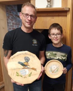 Die u.a. von Manfred Theis gestifteten Scheiben zum Saisonstart gingen an die Familie Kühnle mit Fritz (Vater) und Simon (Sohn).
