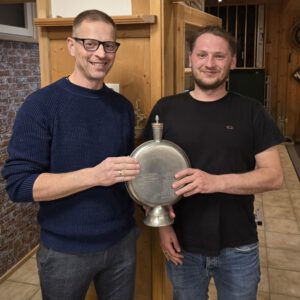 Nach der Preisverteilung übergab Schützenmeister Fritz Kühnle den Wanderpokal an den Lauterbacher Schützenmeister Michael Schnell. Dieser bedankte sich für die Einladung und das Ausrichten des Freundschaftsschießens.